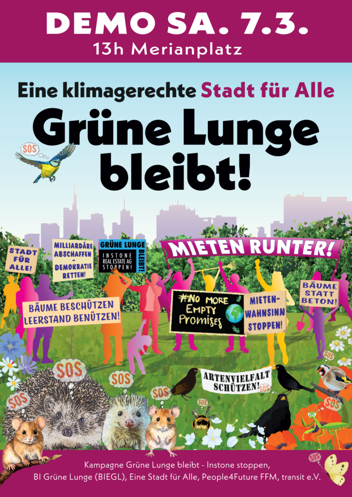 Kampagne Grüne Lunge bleibt – Instone stoppen!, BI Grüne Lunge, Stadt für Alle, People4Future FFM